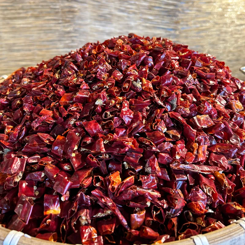 Это идеальное сочетание эстетики остроты и практичности. Изготовлены из отборных мясистых красных перцев, нарезанных вручную. Каждый кусочек сохраняет целостность семян, внутренней мякоти и кожицы, запирая в себе насыщенный аромат и сложную остроту. Их однородная форма удобна в использовании: они быстро отдают свою жгучую основу, избегая при этом излишней крошки, которая могла бы испортить внешний вид блюда.